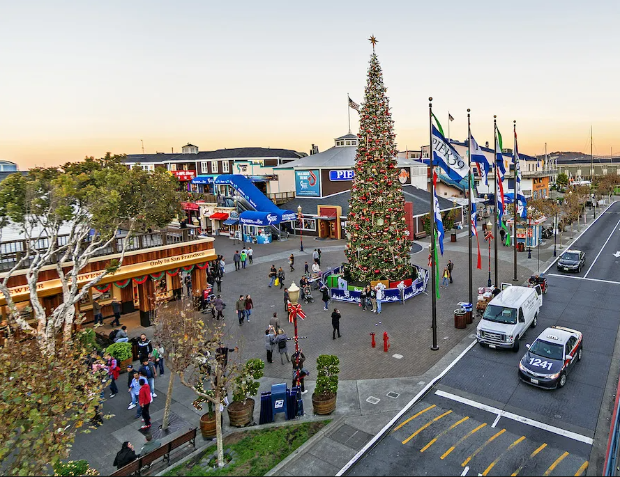 ¡El muelle cobra vida durante las fiestas! Encuentra un sinfín de rincones perfectos para fotos, como el impresionante árbol de Navidad natural de 18 metros en la Plaza de Entrada. Del 5 de diciembre al 11 de enero, el árbol deslumbrará a los visitantes cada media hora, entre las 17:00 y las 22:00, iluminando la costa con un vibrante espectáculo de color y movimiento sincronizado con la música. ¡Visita https://pier39.com/events/ para enterarte de las próximas novedades navideñas!