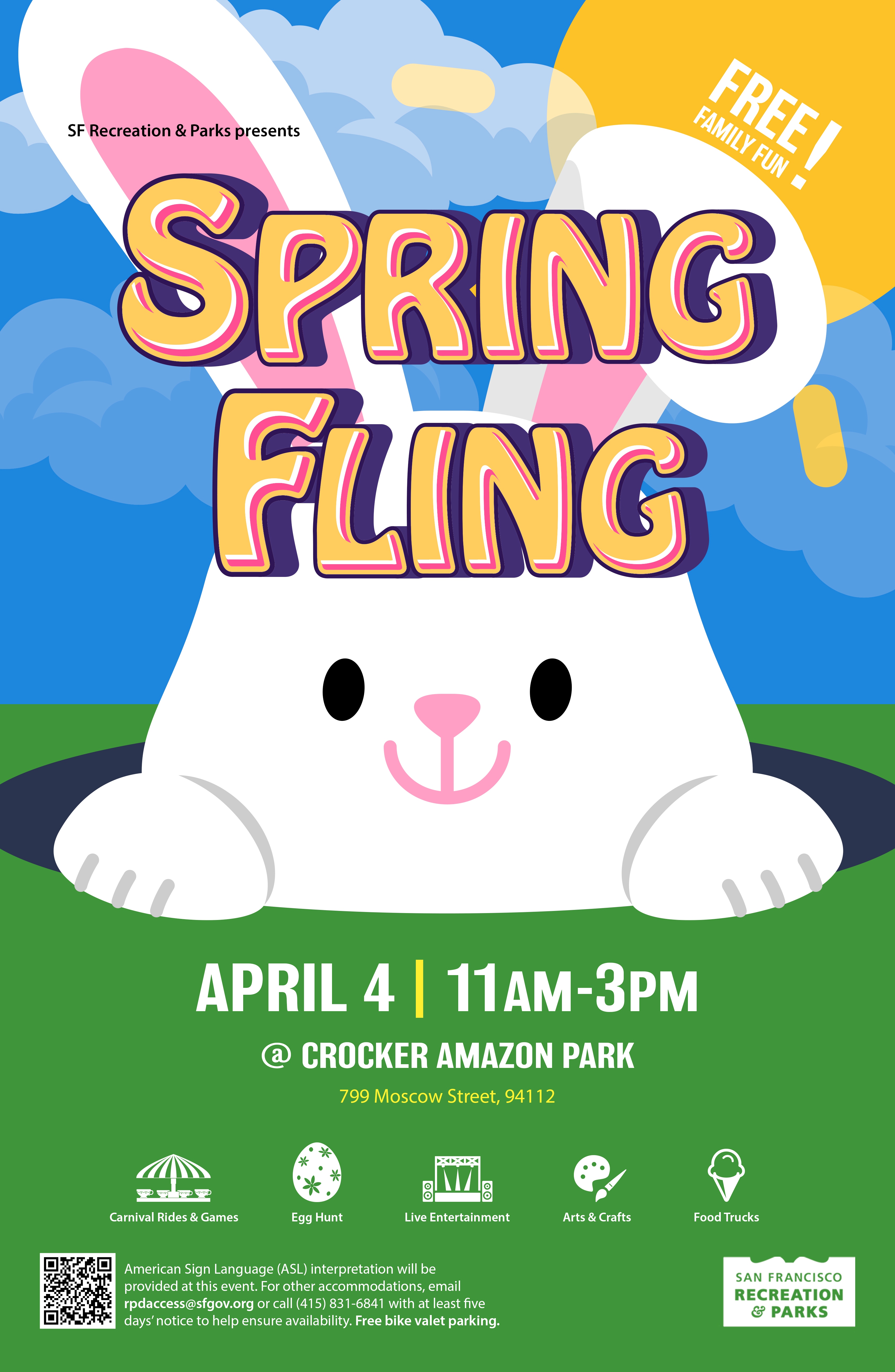 Rec and Park's annual Spring Fling is returning to the Crocker Amazon Park. Come for a fun afternoon of carnival rides, games, live entertainment, arts and crafts, food trucks, and an egg hunt!
