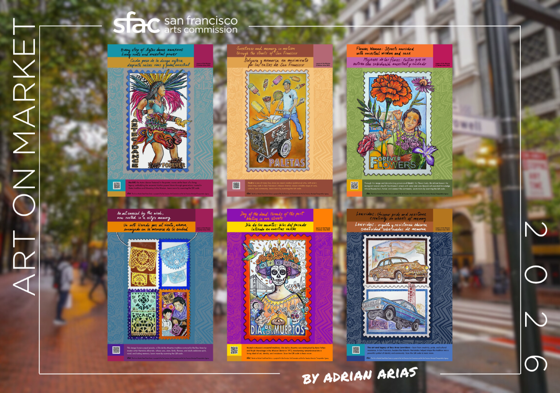 SAN FRANCISCO – The San Francisco Arts Commission (SFAC) is pleased to present Layers of the Mission: A Celebration of Memory and Resilience, a new Art on Market Street poster series installation by San Francisco based artist Adrian Arias.