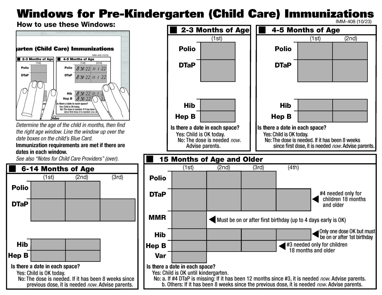 Windows for Pre-Kindergarten (Child Care) Immunizations (Pink Card)